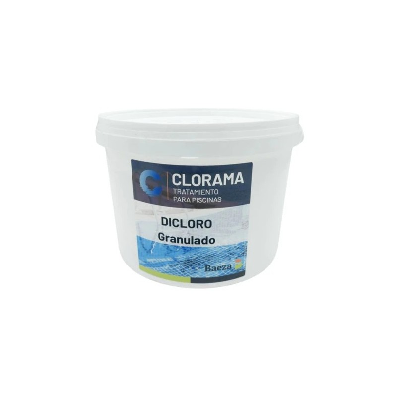 Bote dicloro granulado. Cloro de choque al 55% Desinfectante para agua de piscina. Compuesto orgánico de disolución rápida altamente estabilizado, con un contenido del 55% de cloro útil, para el tratamiento de las piscinas públicas y privadas. Especialmente indicado para el tratamiento de choque al iniciar la temporada.